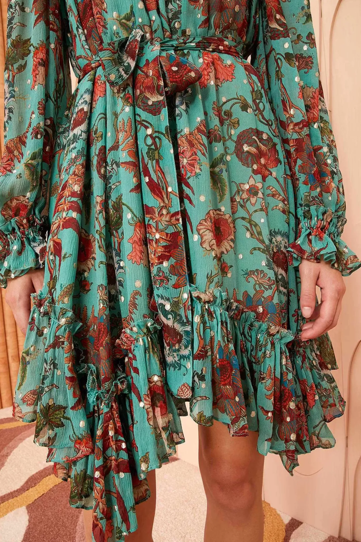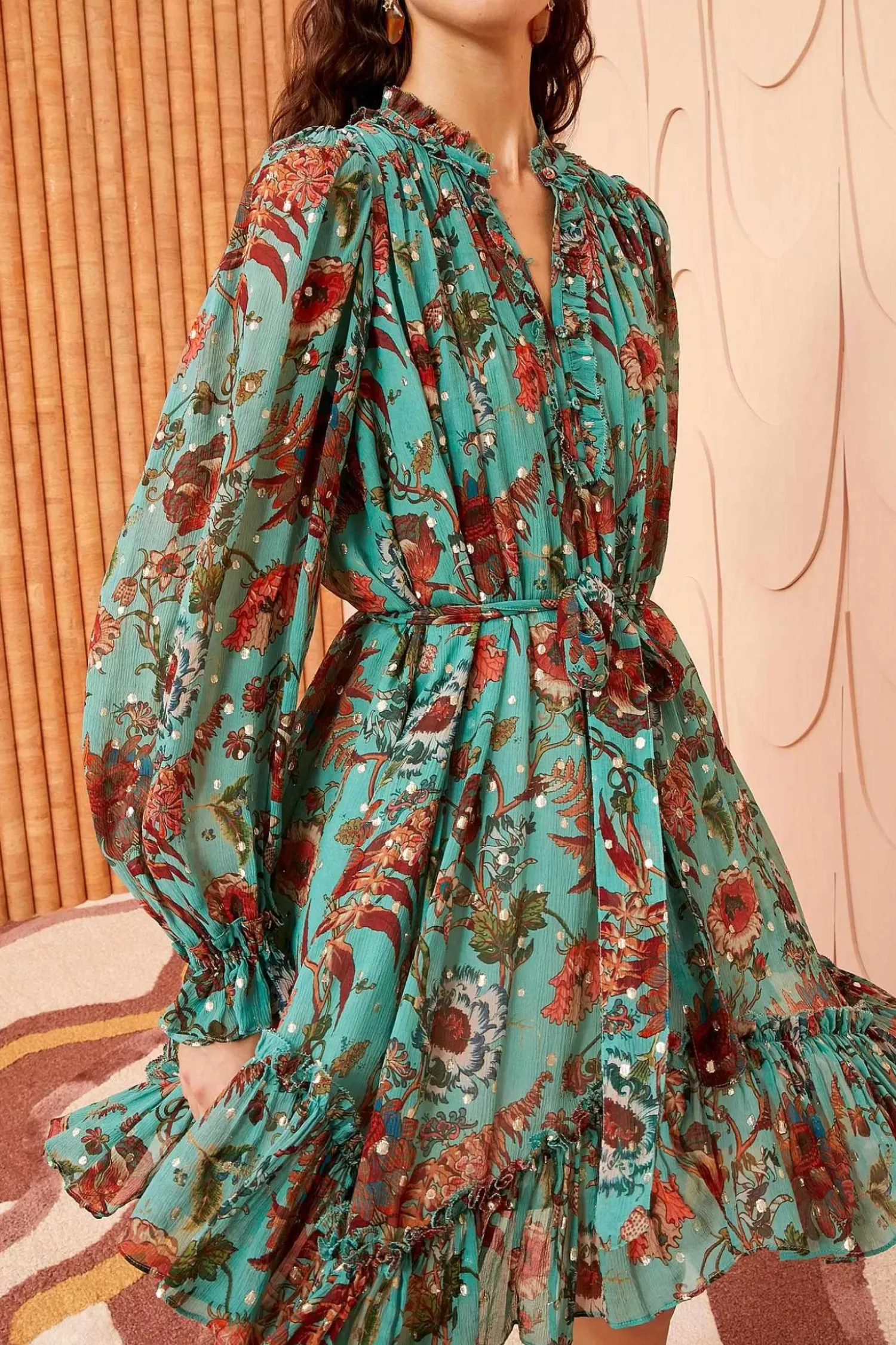 Anais Kjole Gronn Floral Volangeret Minikjole