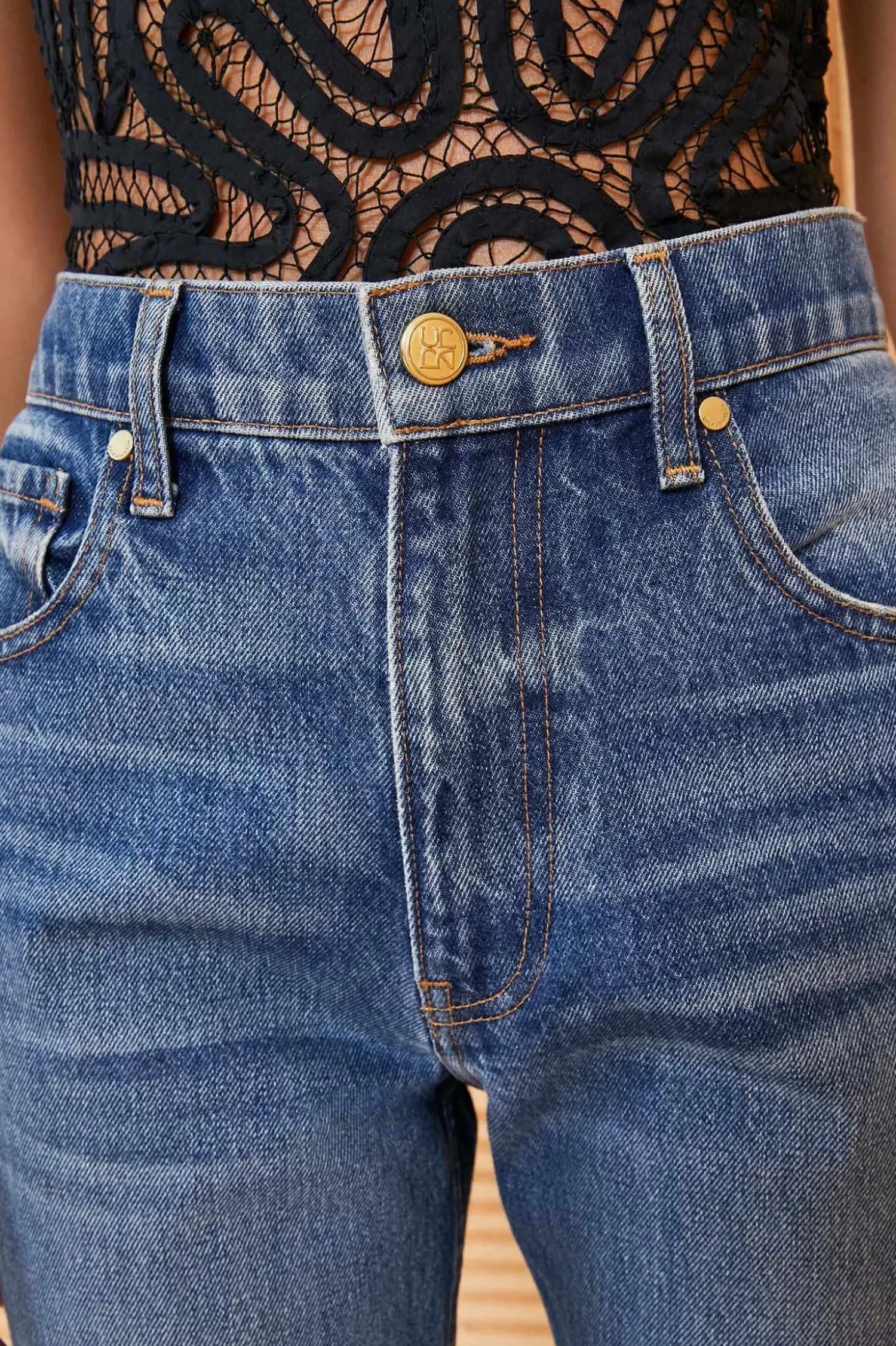 The Daphne Jean Returns This Season In A Medium Indigo Wash Denim. This Slim Boyfriend Style Is Made In Los Angeles And Features A Relaxed Fit, A Rolled Cuff, And A Low-Rise Silhouette. This Jean Is Cut In Non-Stretch Denim With A Leather Logo-Embossed Waistband Patch And A Hand-Hammered Ring Attached To The Back Belt Loop. Inseam: 31 Inches Uncuffed Or 29.5 Inches Cuffed.