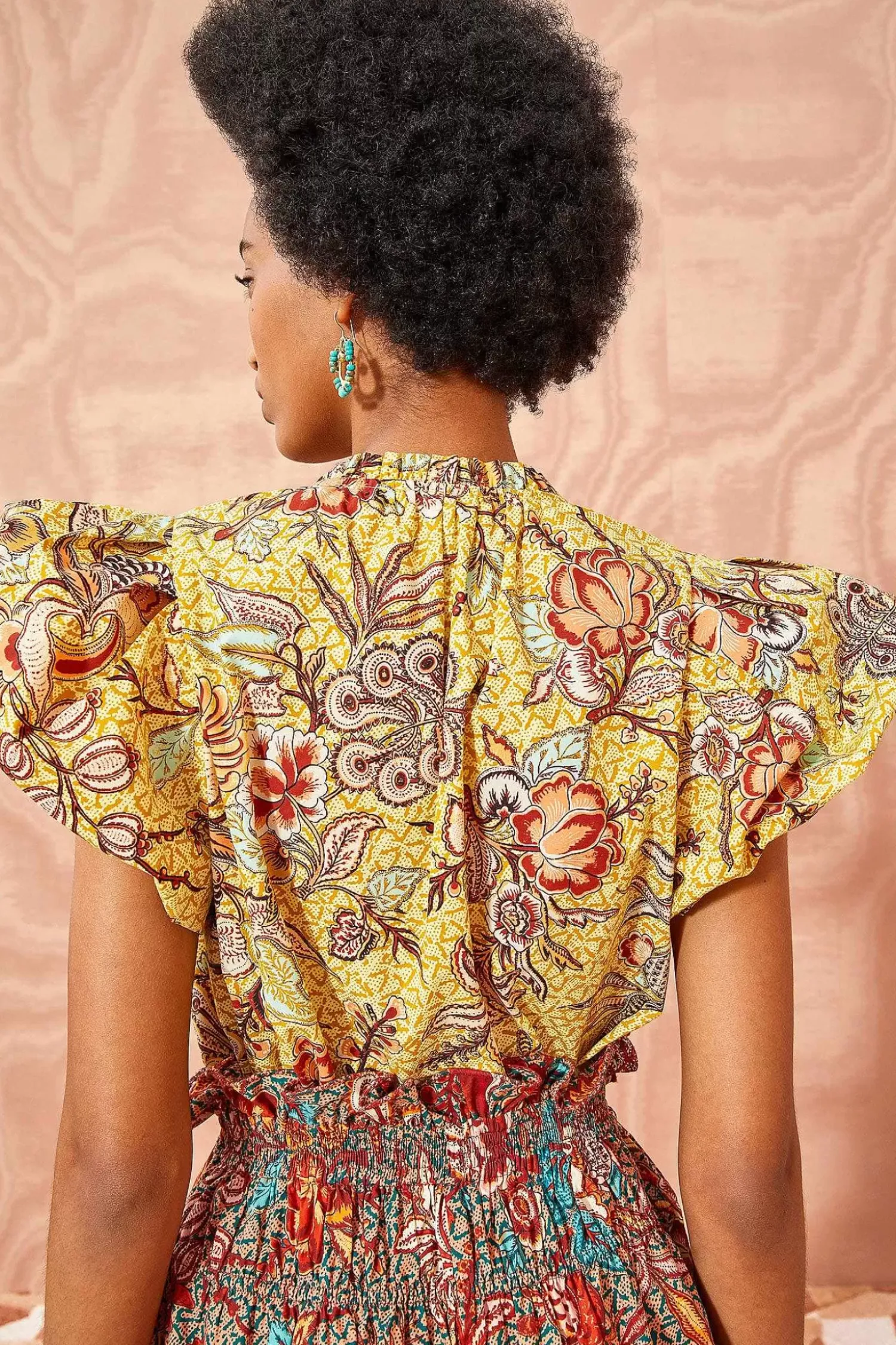 The Evelyn Top Is Crafted From Our Wild Hibiscus Printed Cotton Poplin, A Bold Floral Boasting Lively Hues Of Yellow And Red. This Lightweight Short-Sleeved Top Features A Split Neckline And Flutter Sleeves. Pair It With The Acacia Skirt In Calla Lilly For A Matching Set, Or Mix With Other Monochrome Or Printed Poplin Pieces From The Pf23 Season For A Playful Look.