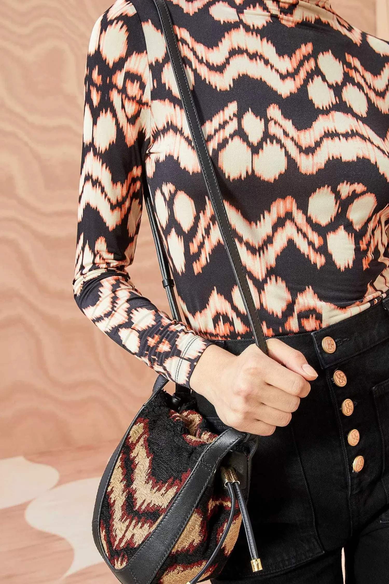 The Lee Pouch Is A Mini Crossbody Silhouette Crafted In Italy From Jacquard In A Vibrant Obsidian And Cream Motif That Mirrors Our Ready-To-Wear Collection. Framed By Supple Leather, This Drawstring-Style Bag Features An Adjustable Crossbody Strap And An Internal Pocket To Fit Your Everyday Essentials.