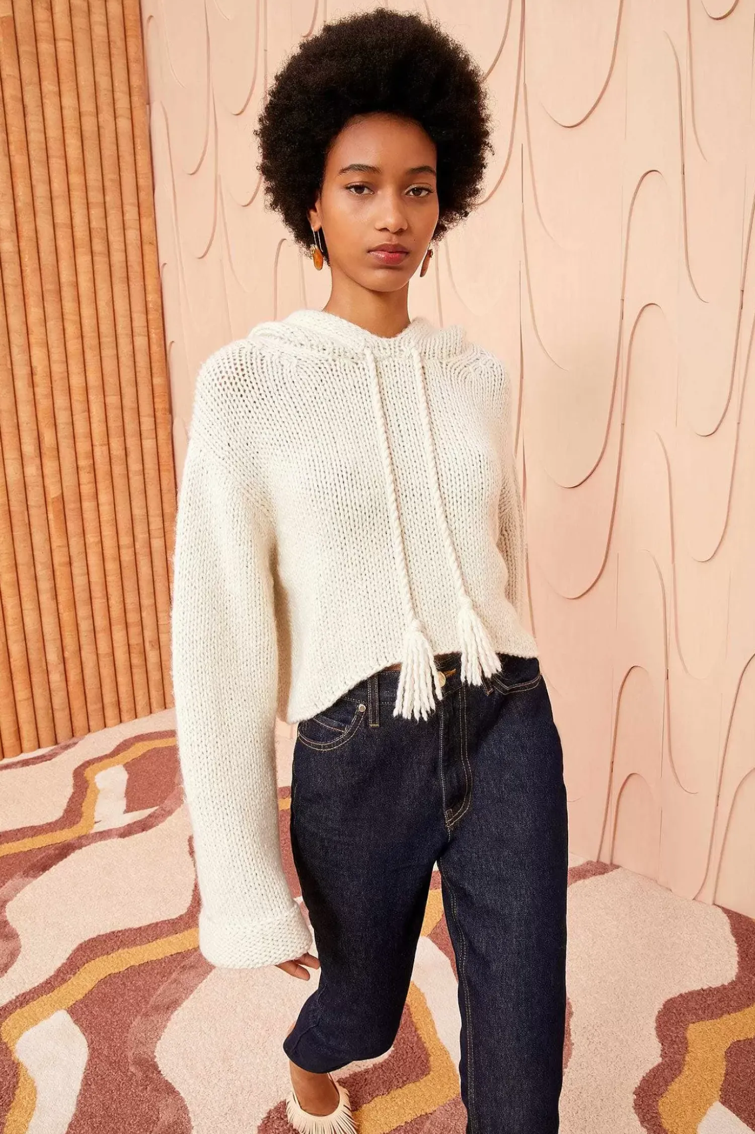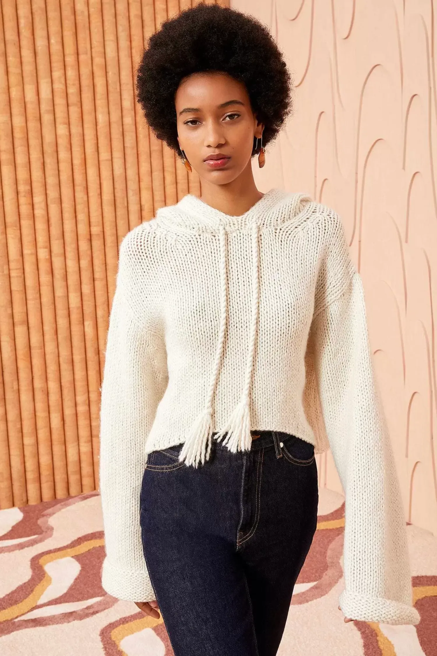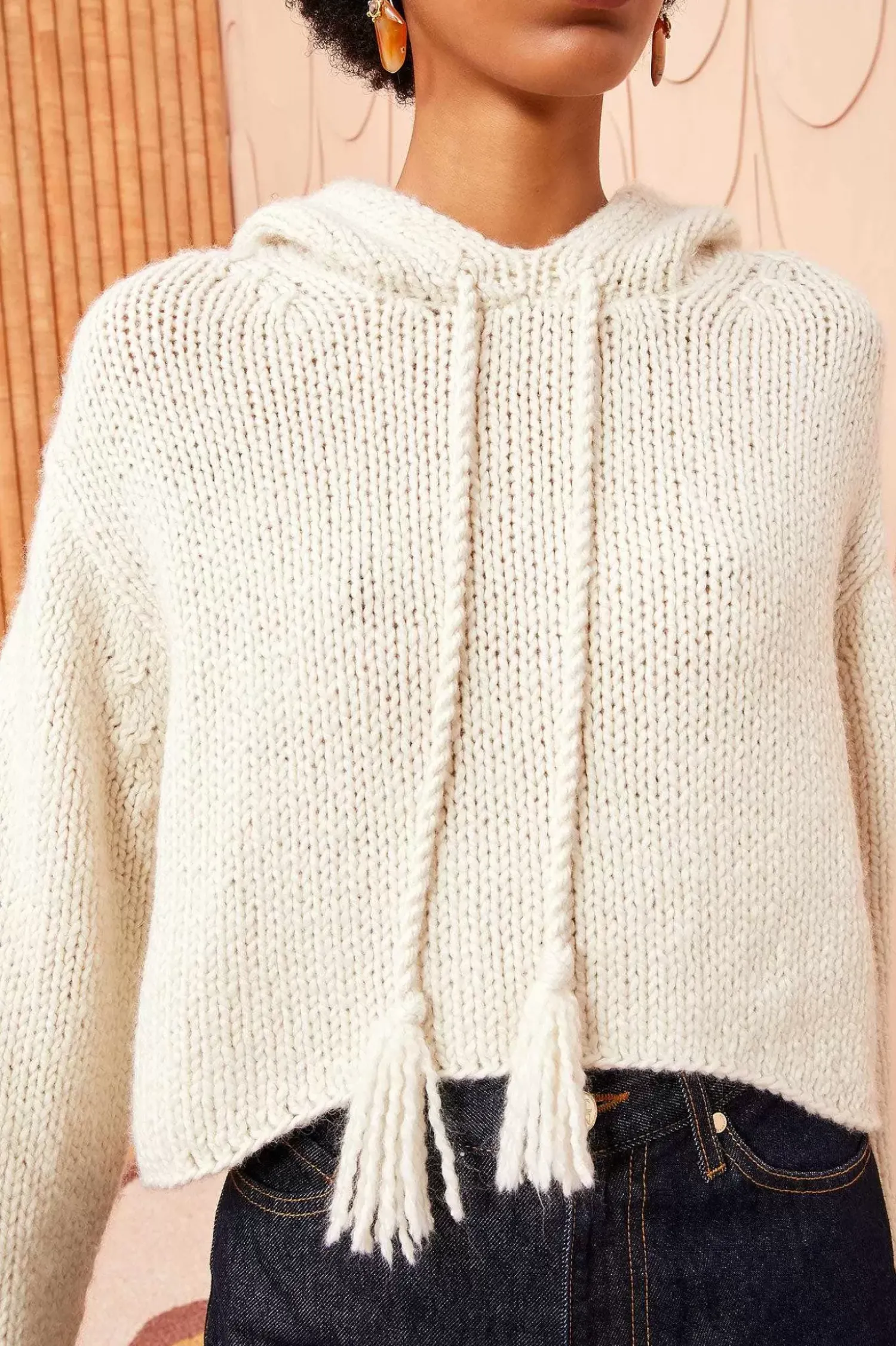 The Luciana Hoodie Is Spun From Italian-Sourced Wool And Cashmere Into Our Ultra-Soft, Luxe Lofty Knit. This Luxurious Essential Has Elongated Sleeves, A Cropped Silhouette, And Is A Versatile Ivory Hue. It Is Finished With Playful Tassels At The Front.