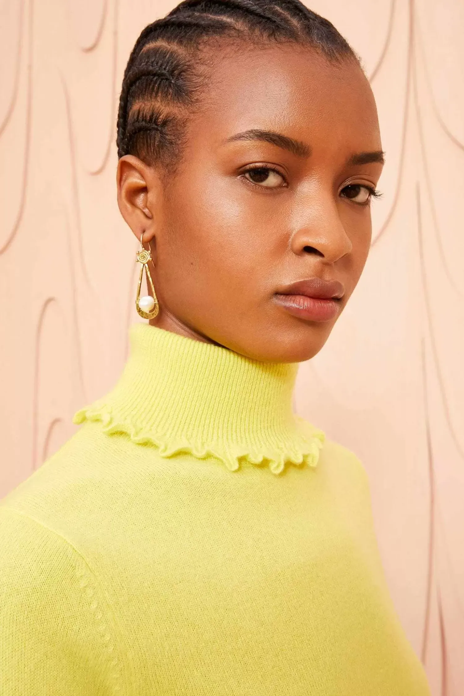 The Maude Pullover Is A Vibrant Beauty Made From Bright Yellow Cashmere In A Classic Turtleneck Silhouette. This Long-Sleeve Top Has Delicate Pointelle Ruffles And Is Perfect For Tucking Into A Favorite Skirt Or One Of Our Handmade Denim Styles.