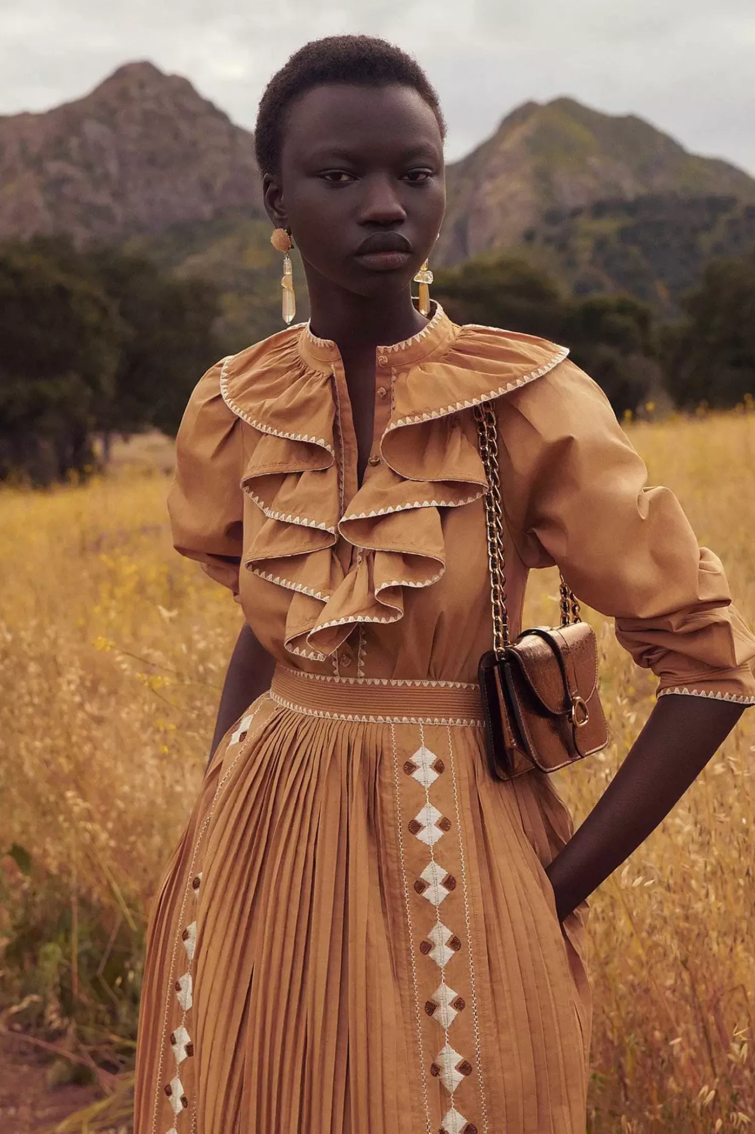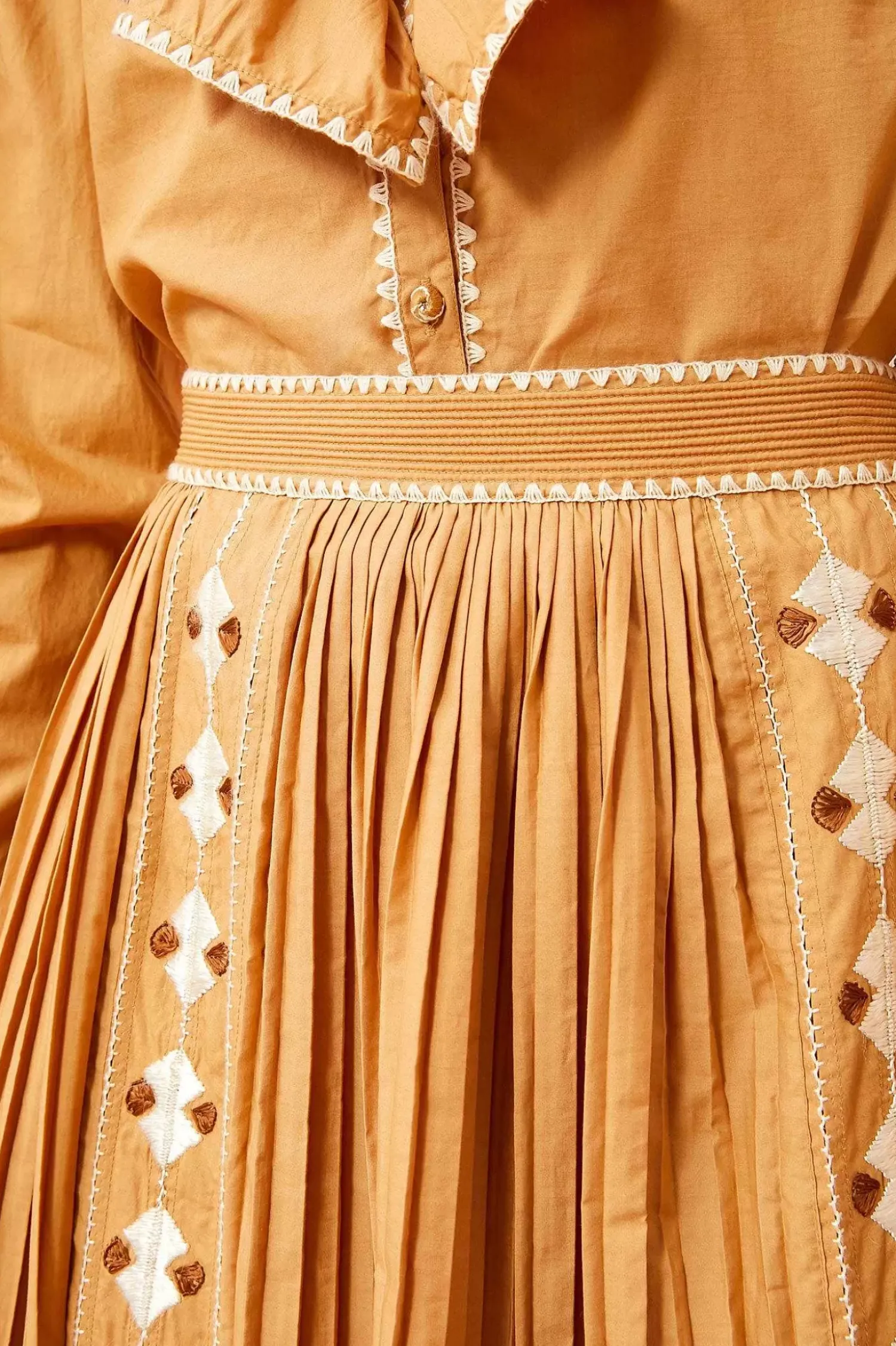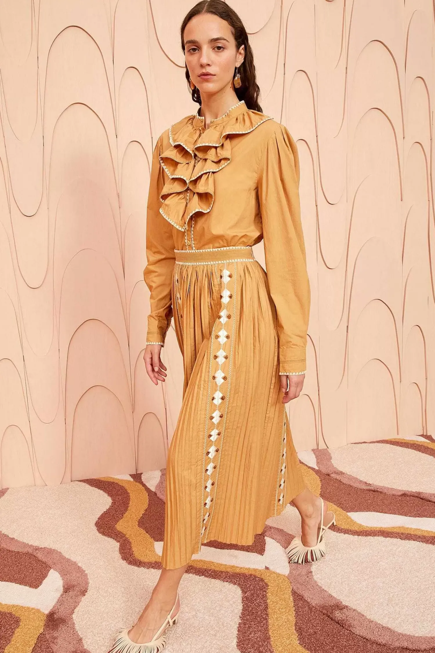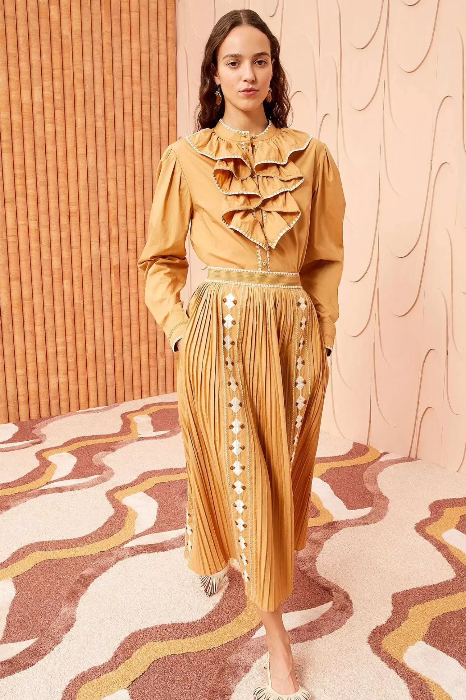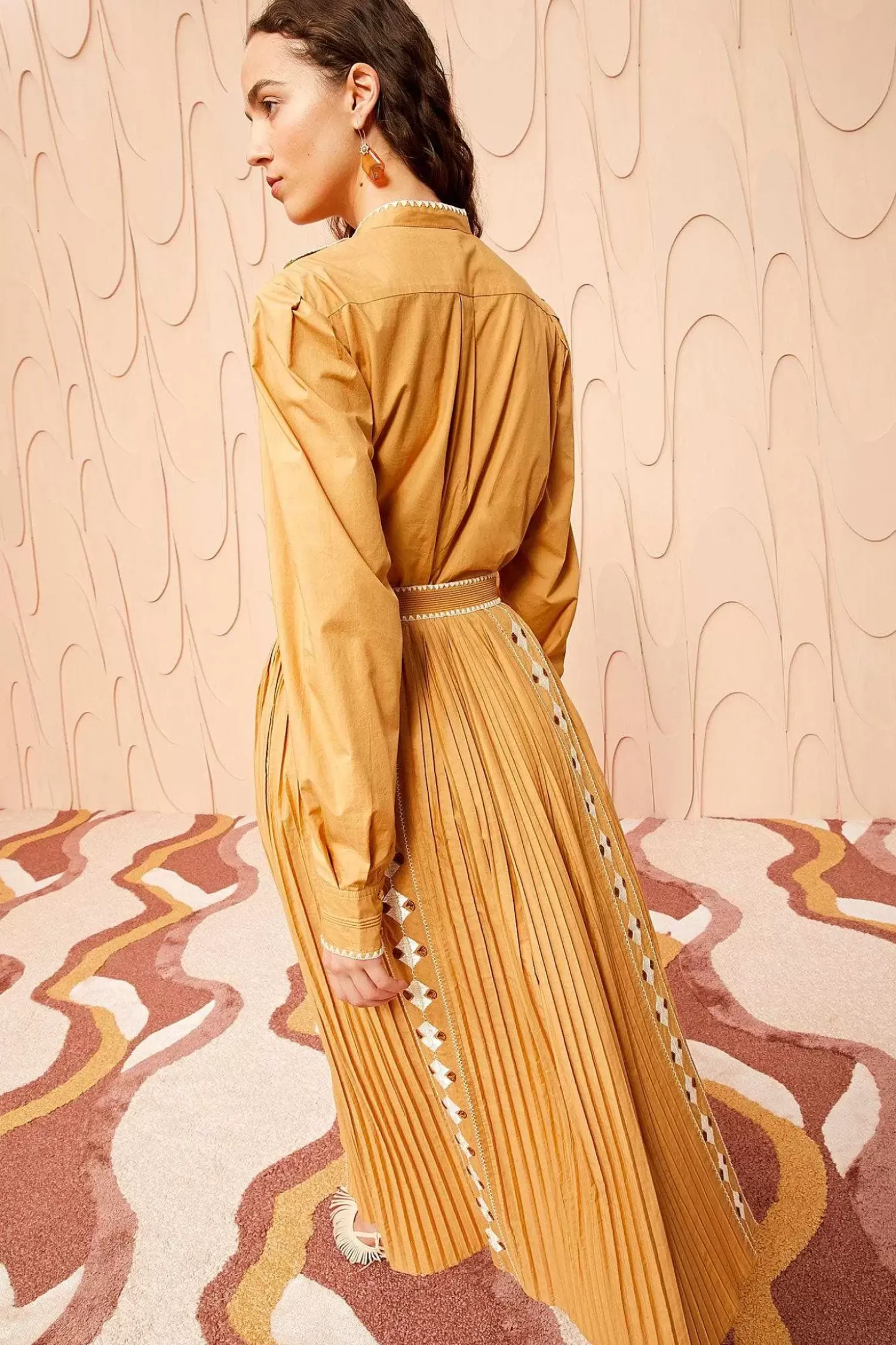 As Featured In Look 40 Of Our Pre-Spring ’24 Lookbook, The Sabina Skirt Is Crafted From Our Classic Water-Washed Poplin In A Warm Tan Hue. This Midi-Length Skirt Features Gorgeous Pleating That’S Illuminated With Intricate Embroidery. It Is Finished With A Hidden Side-Seam Zipper.