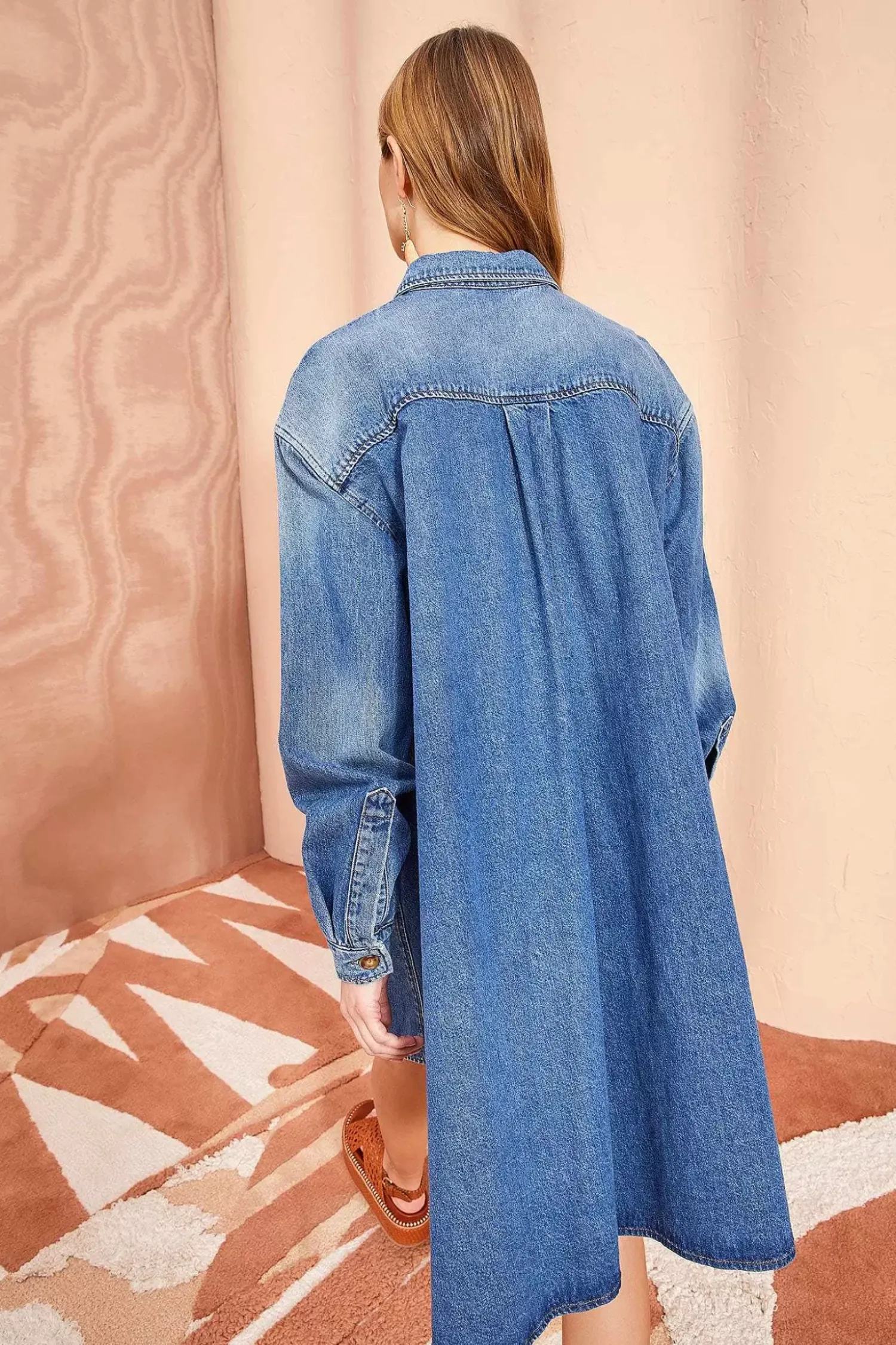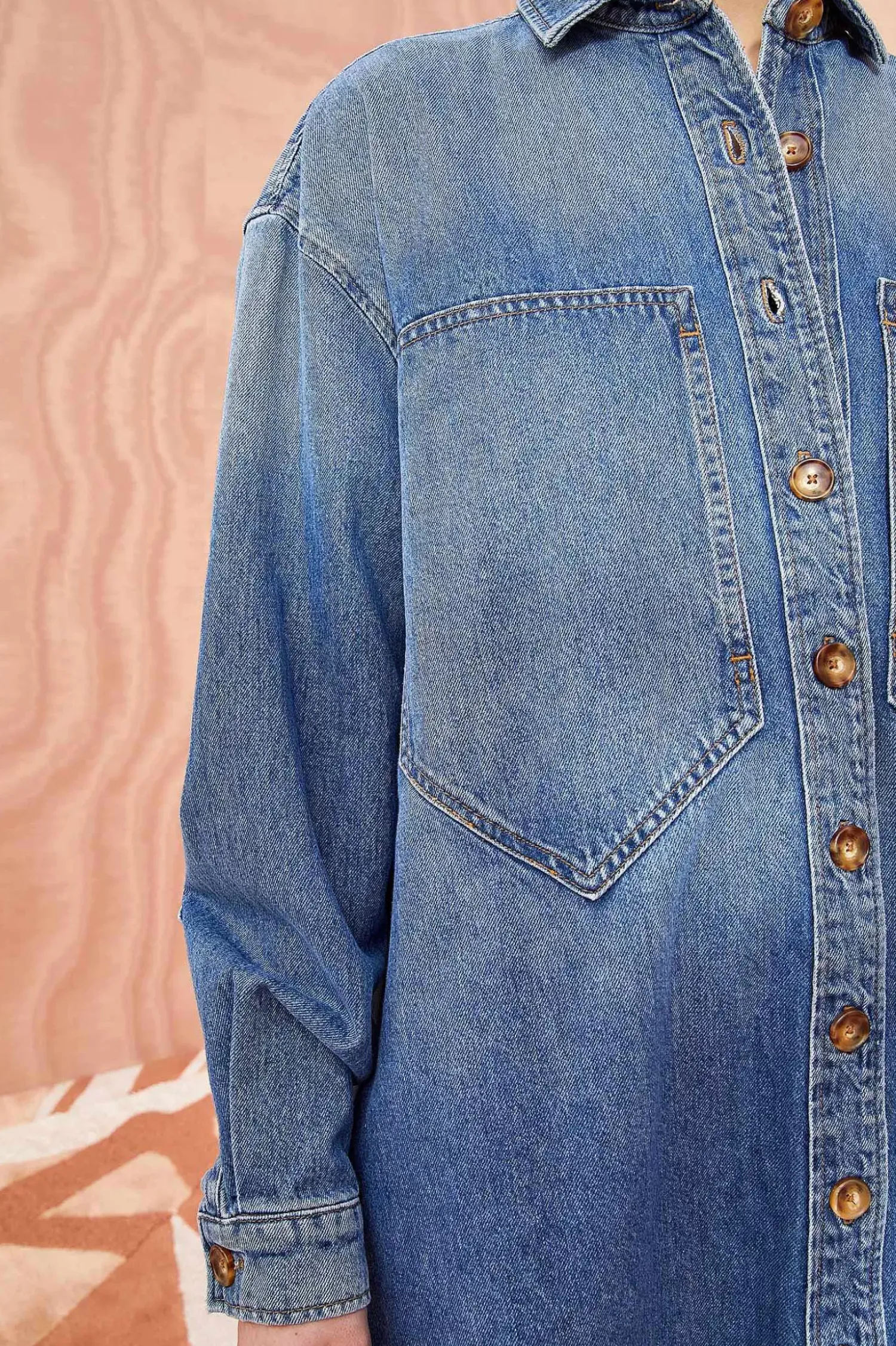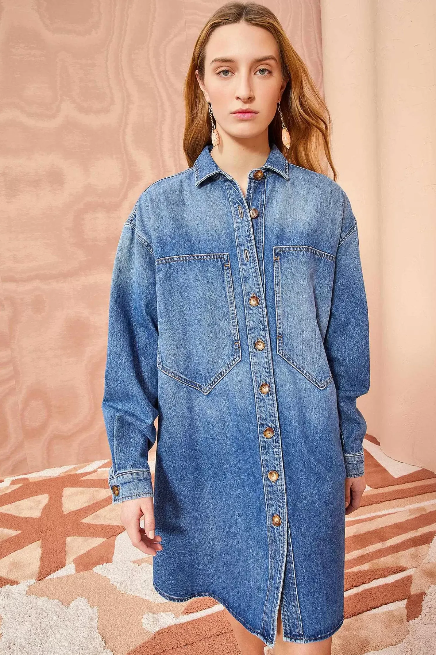 The Valerie Is An Oversized Shirtdress Crafted From Our Signature Handmade Denim In A Perfect Blue Wash. This Classic Button-Down Shirt Silhouette Features Oversized Front Pockets And Loose Sleeves That Button At The Cuff. Wear It As A Mini Dress Or Pair It With Jeans In Our Danube Medium Blue Wash To Achieve A Full Denim Look.