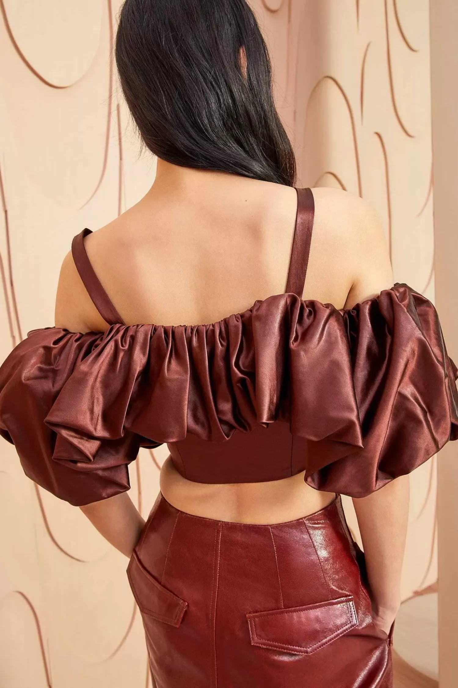 As Featured In Look 42 Of Our Autumn/Winter ’23 Runway Show, The Fia Top Is Cut From Beautiful Italian Suiting That’S Been Treated With A Glossy Chintz Finish And Dyed An Earthy Mahogany Hue. This Elegant Silhouette Features Cloud-Like Sleeves Which Expand Across The Fitted Bodice, And Is Finished With A Side-Seam Zipper And Light Boning.