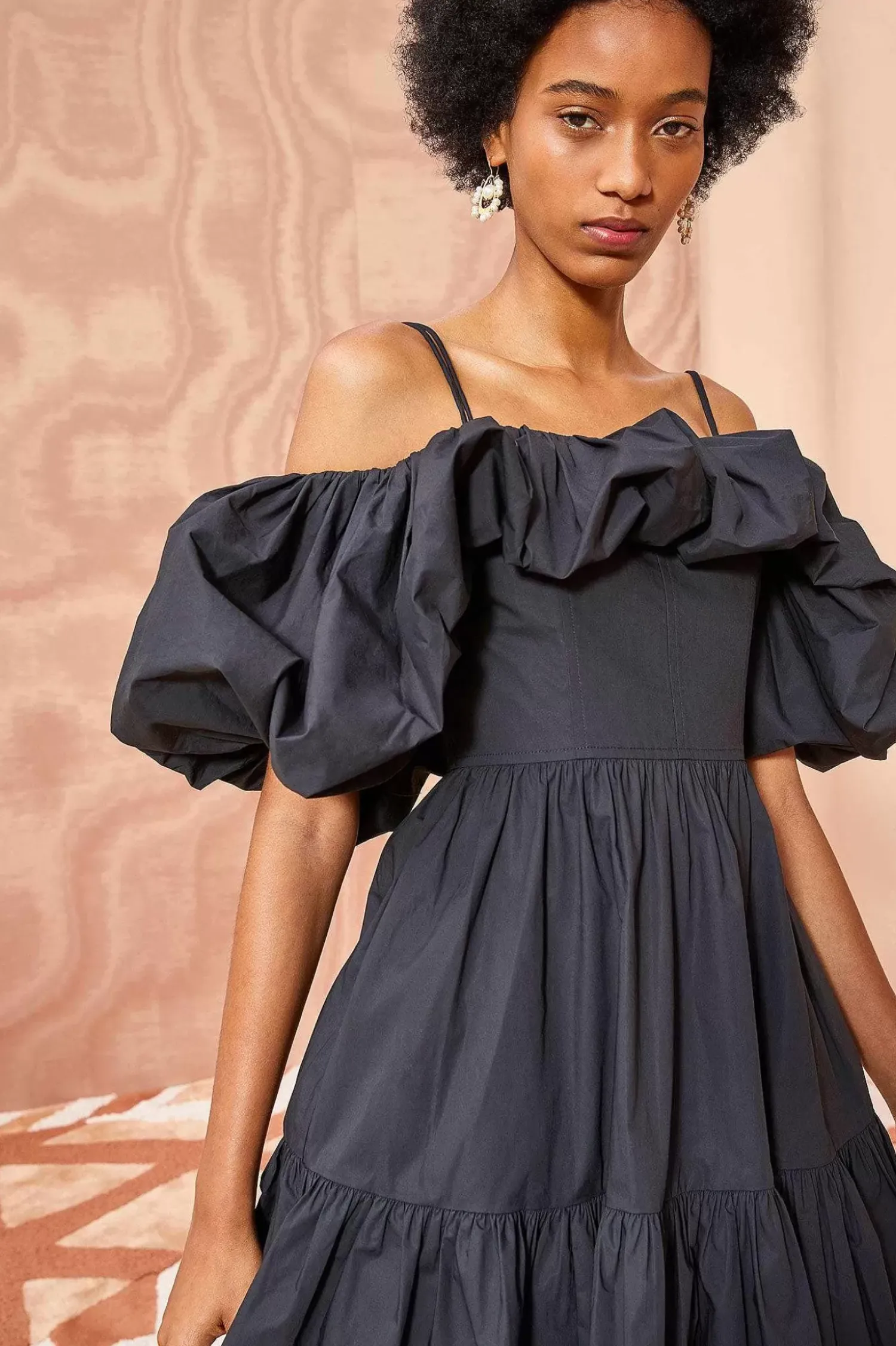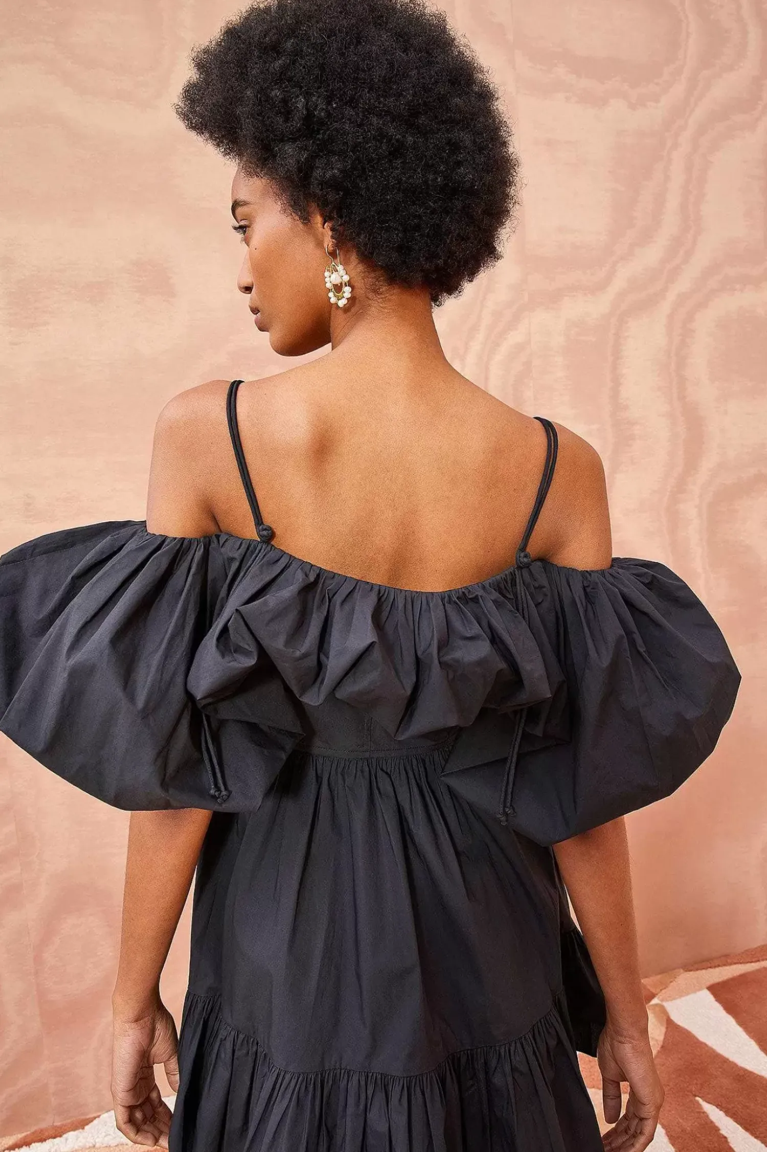 The Lila Dress Is Cut In Our Signature Cotton Poplin In A Classic Black Hue. This Airy Off-The-Shoulder Minidress Features A Corset-Style Bodice Layered Underneath A Poufed Ruffle That Runs Along Each Shoulder. It Is Finished With Delicate, Adjustable Shoulder Straps, Pockets And A Hidden Side-Seam Zipper.