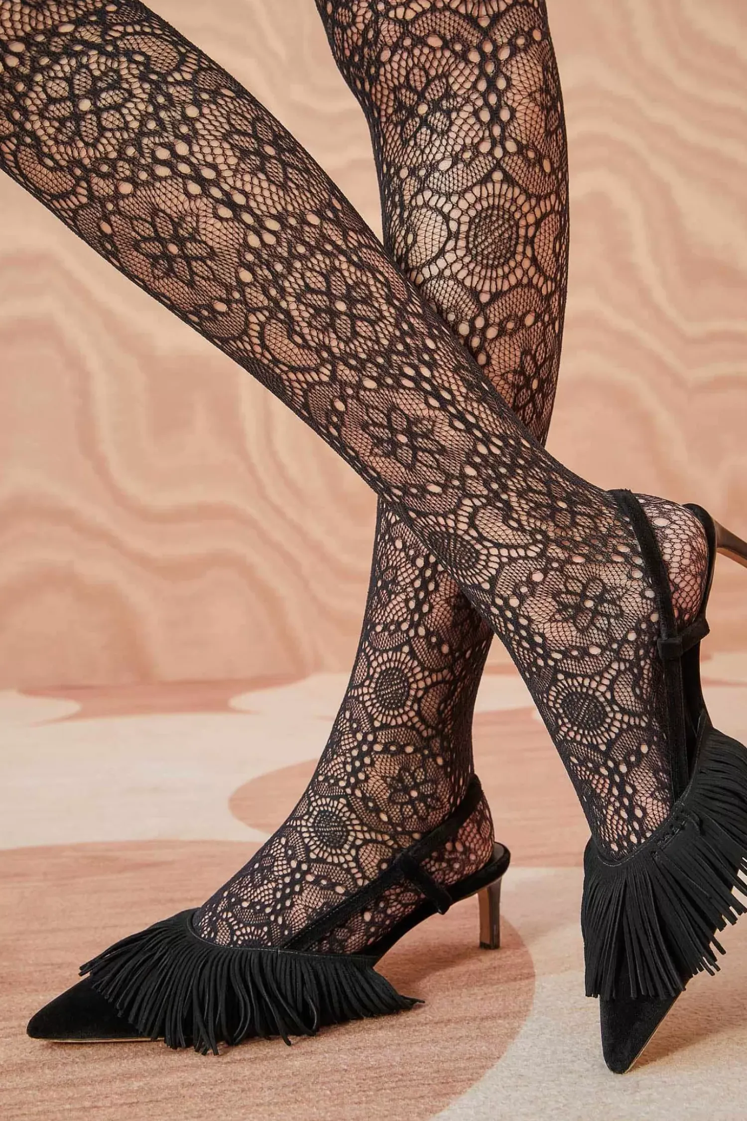 As Featured In Look 17 Of Our Autumn/Winter ’23 Runway Show, The Shira Fringe Slingback Is A True Favorite Of This Latest Collection. Designed With A Straight Kitten Heel Shape And A Sling-Back Strap, This Solid Black Shoe Is Wearable While Maintaining Intrigue With Fine Suede Fringe Outlining The Toe.