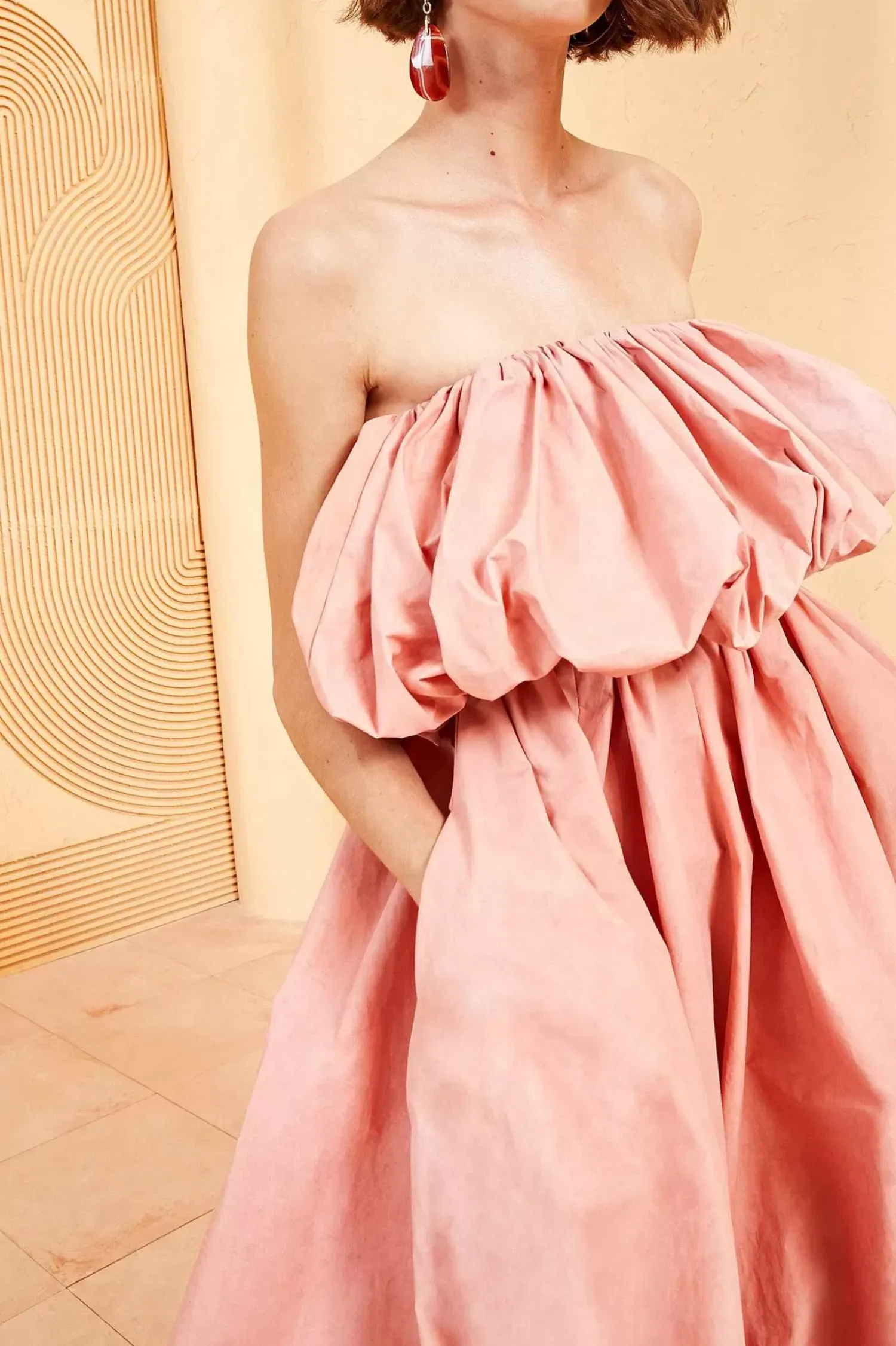 As Featured In Look 36 Of Our Spring/Summer ’23 Runway Show, The Vittoria Gown Begins Our Exciting Introduction Into Showstopping Ballgowns. Made From Italian Water-Repellent Trench Fabrication, This Gown Is Carefully Draped Into A Bubble-Hem Silhouette At Both The Bust And Hemline. The Rose-Hued Color Is Made Through An Intricate Dying Process Which Produces A Unique Watercolor Finish. This Dress Is Finished With An Interior Corset Bodice. This Piece Is An Ulla Johnson Exclusive And Is Made In New York.