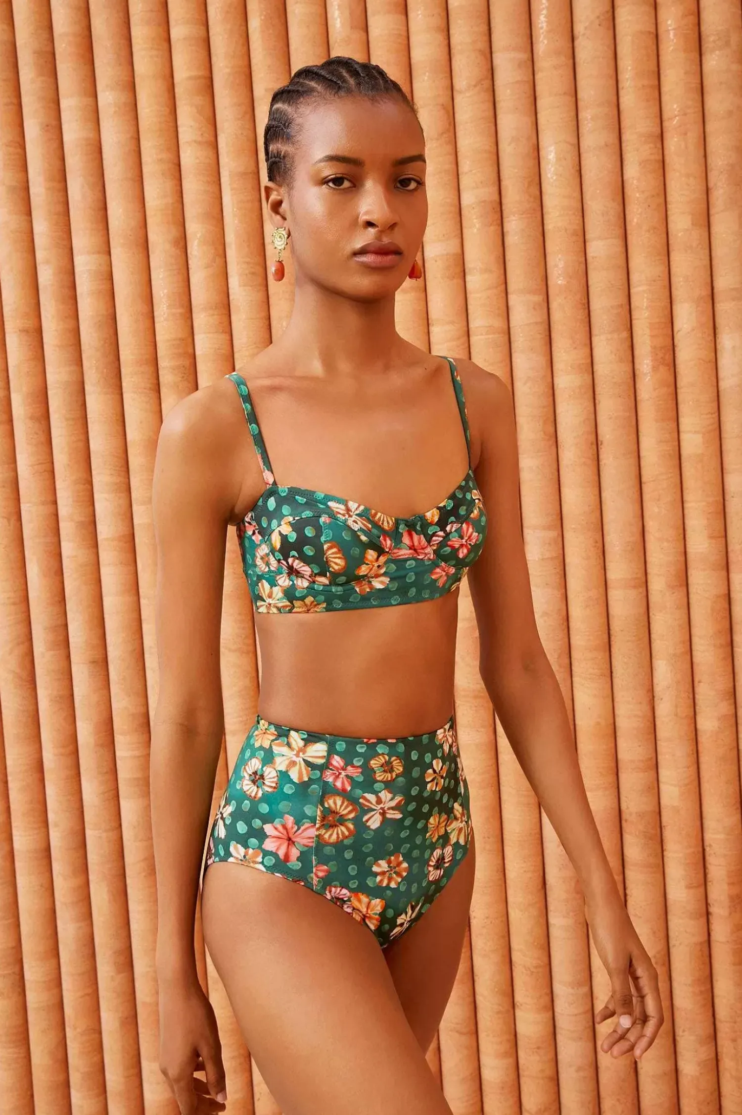 Our Zahara Bikini Top Is A Forever-Favorite Silhouette Defined By Underwire Cups And Corset-Style Boning. This Green-Based Top Features Watercolor Pansies Set Against Our Dotted Shibori Motif And Has Adjustable Spaghetti Straps. Pairs Perfectly With Our Zahara Bikini Bottom.